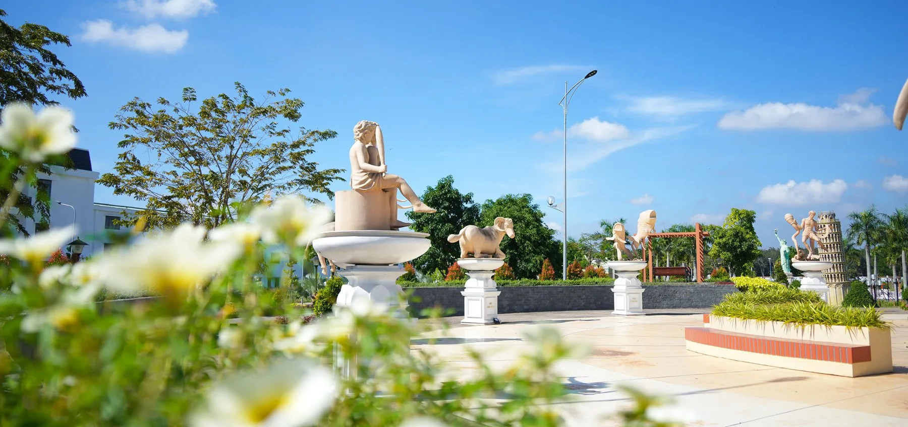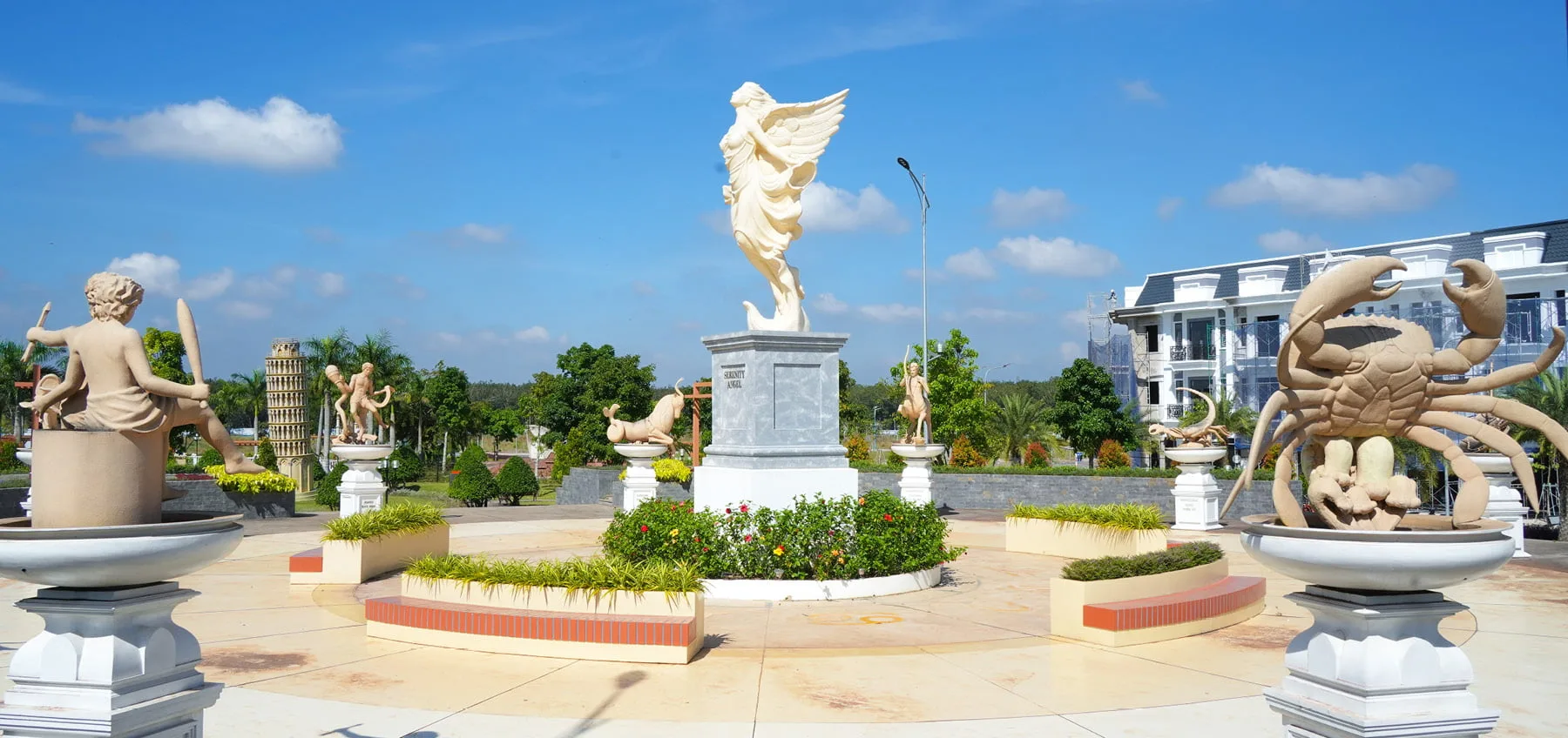 - Không gian xanh & cảnh quan độc đáo: Công viên trung tâm 2 ha với mô hình kỳ quan kiến trúc thế giới, quảng trường 12 cung hoàng đạo, và các tiểu khu cảnh quan.