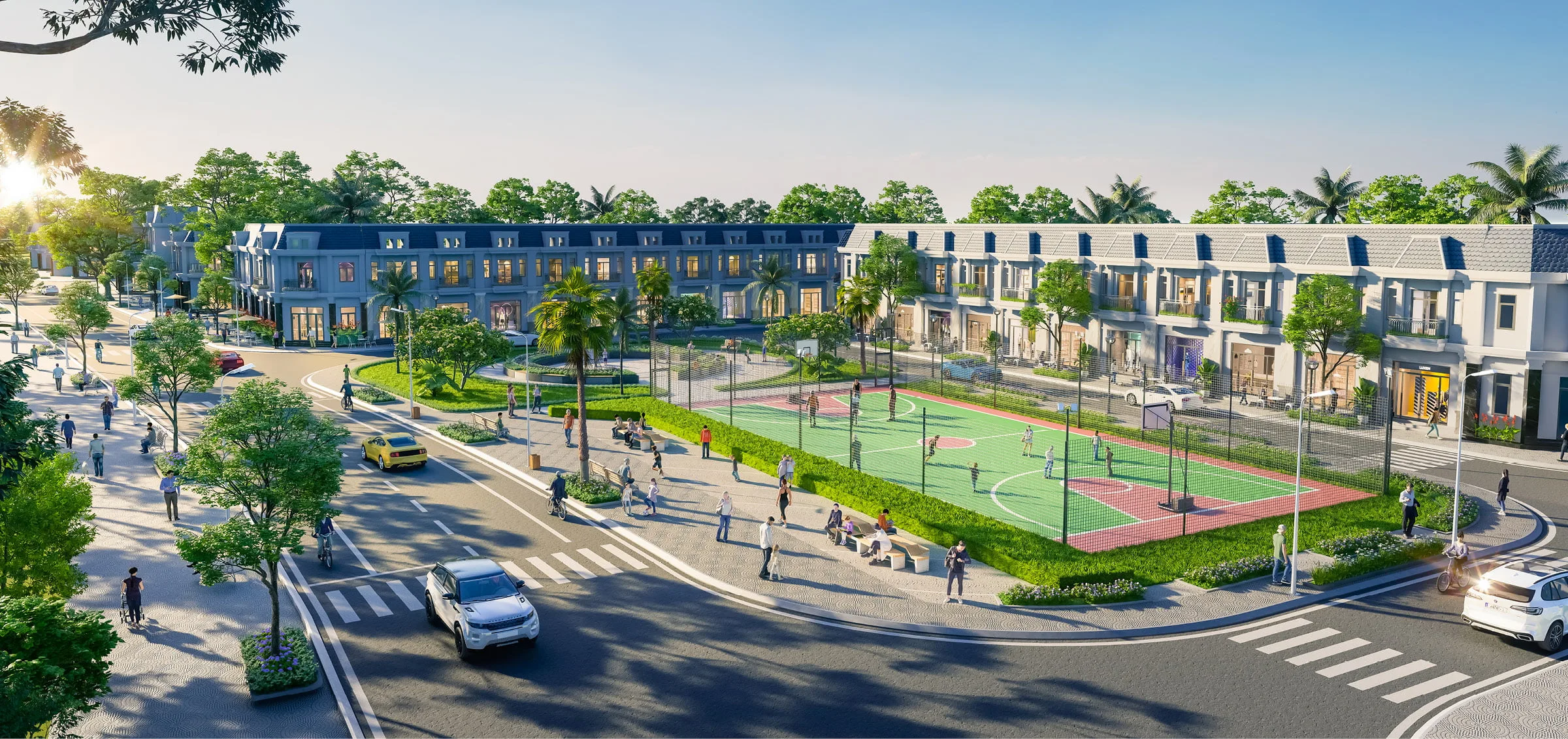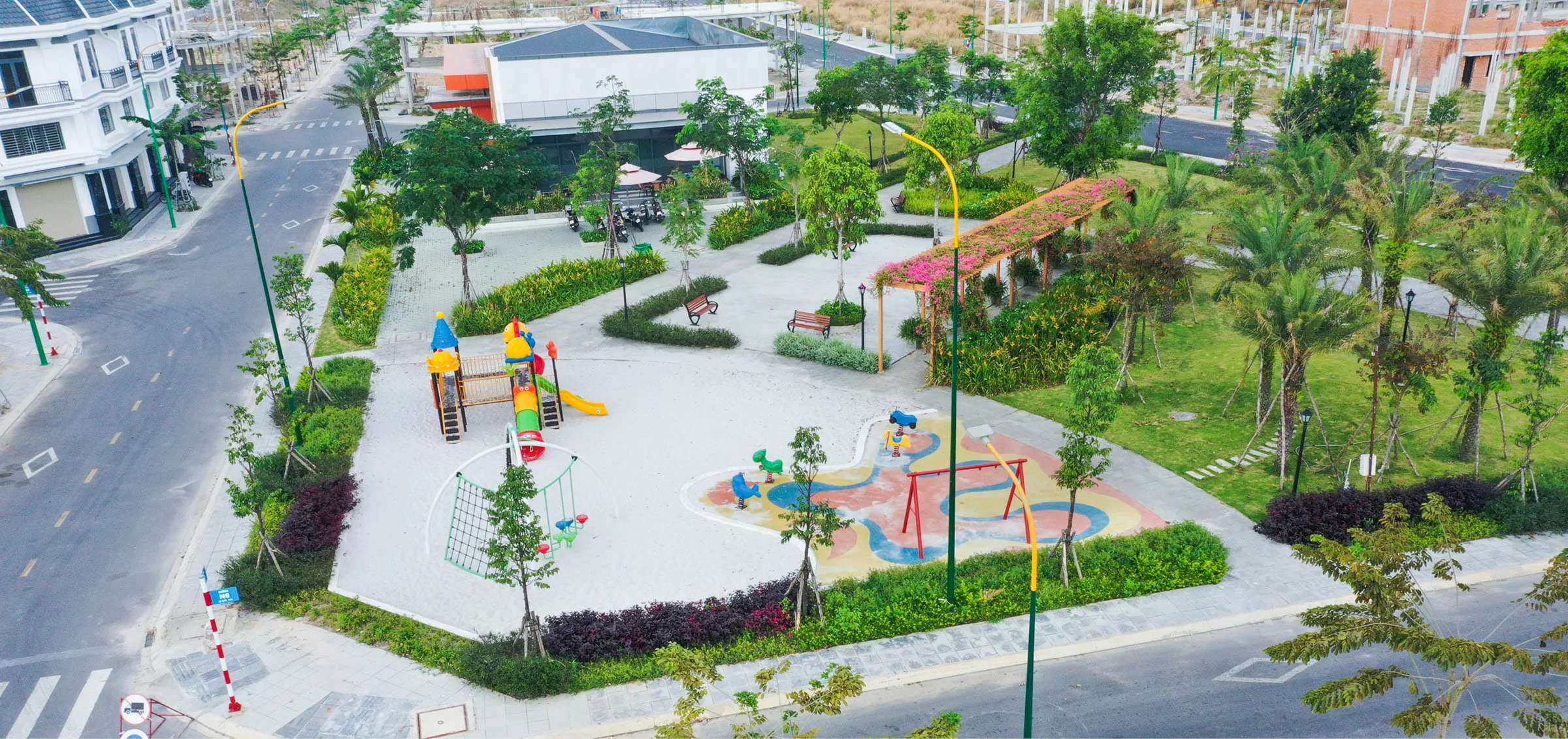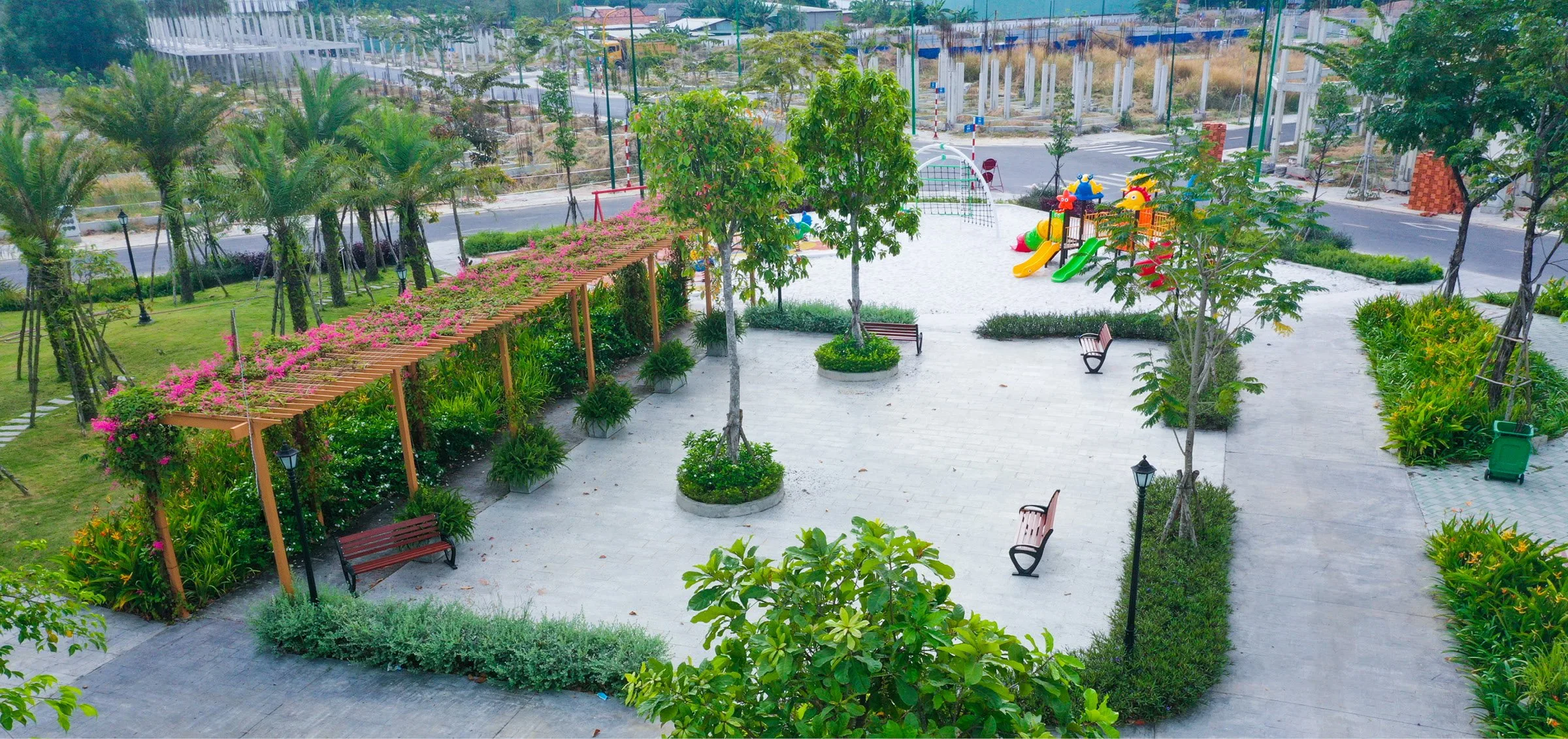 - Hạ tầng nội khu hoàn chỉnh: Đường nhựa, vỉa hè lát đá, công viên 3.400m², khu thể thao, trường mầm non, khu vui chơi trẻ em.