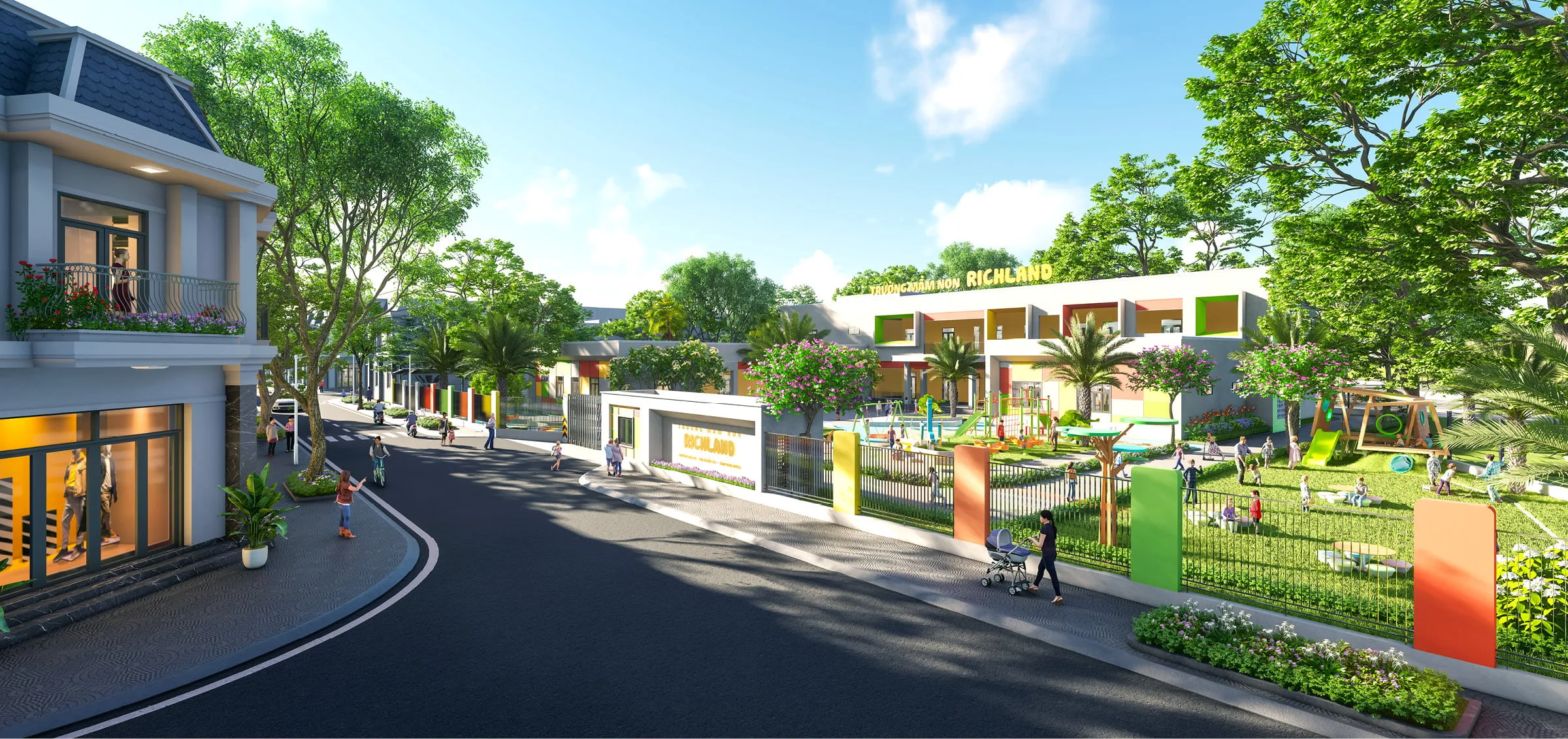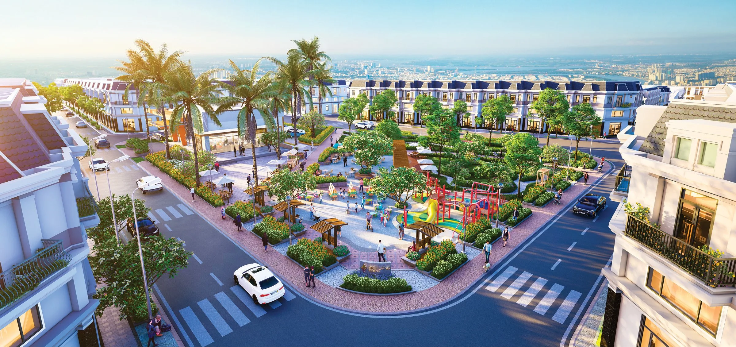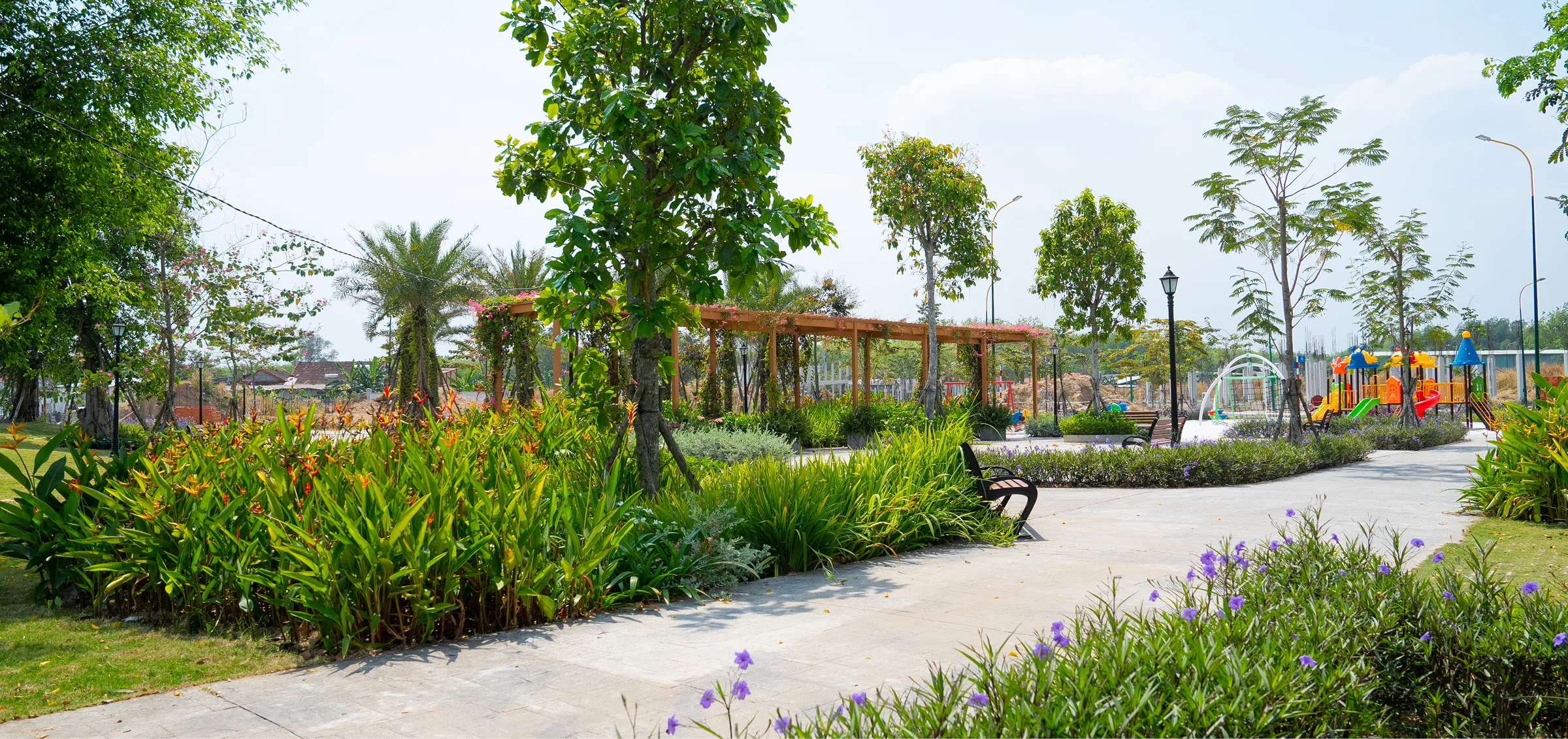 - Hạ tầng nội khu hoàn chỉnh: Đường nhựa, vỉa hè lát đá, công viên 3.400m², khu thể thao, trường mầm non, khu vui chơi trẻ em.